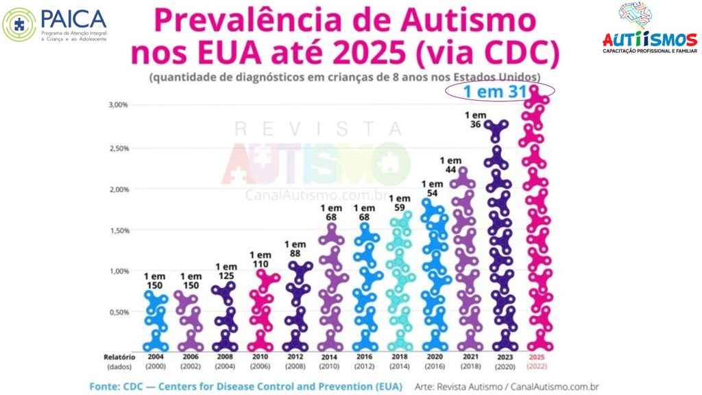 Nas duas últimas décadas verificamos o crescente número de casos de pessoas diagnosticadas com TEA, passando de 1 a cada 166 pessoas em 2004, para 1 a cada 31 em abril/2025, em estudo publicado pelo CDC – Centro de Controle de Doenças dos Estados Unidos, realizado com crianças de 8 anos. No Brasil, tivemos um marco histórico no dia 16 de maio, quando saiu o primeiro senso de pessoas com Autismo, realizado pelo IBGE, com uma prevalência de 1 a cada 38 pessoas com diagnóstico de TEA, totalizando na cidade de Campinas, aproximadamente 15,5 mil pessoas que declararam ter o diagnóstico de autismo, representando 1,4% da população da cidade, segundo o correio.rac.com.br
